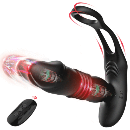 Dual Cock-Ring Thrusting Prostate Massager with 12 Vibrations